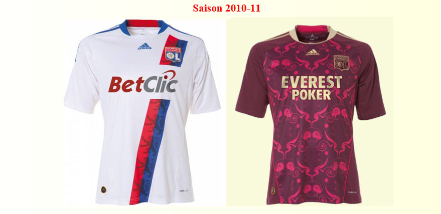 Principaux maillots de l’OL – Années 10