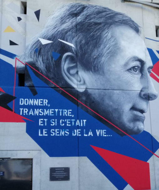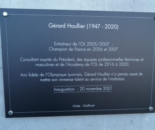 la belle fresque et la plaque rendant hommage à Gérard Houllier.