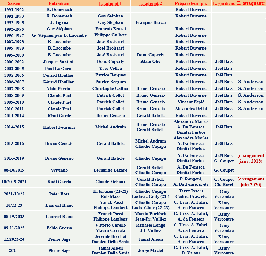 supplémentaires dans le staff est survenue à Lyon sous l’ère Raymond Domenech.
