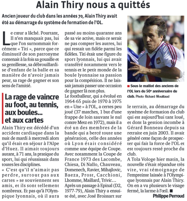 Thiry est un ancien joueur de l’OL (professionnel au début des années 70). Il a