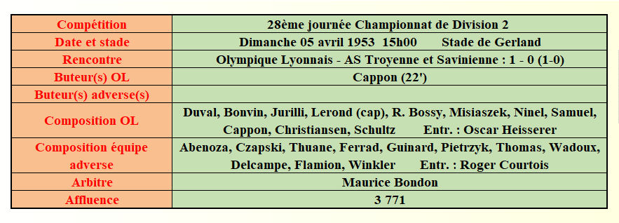 Saison 1952 - 1953