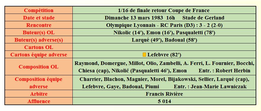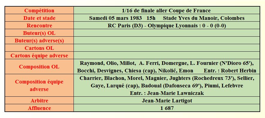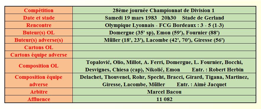 Saison 1982 - 1983