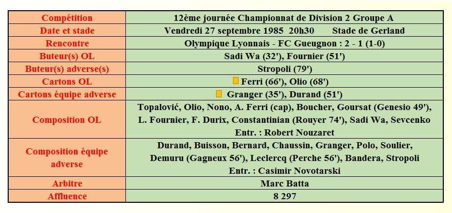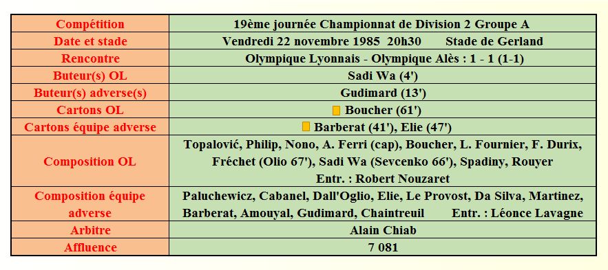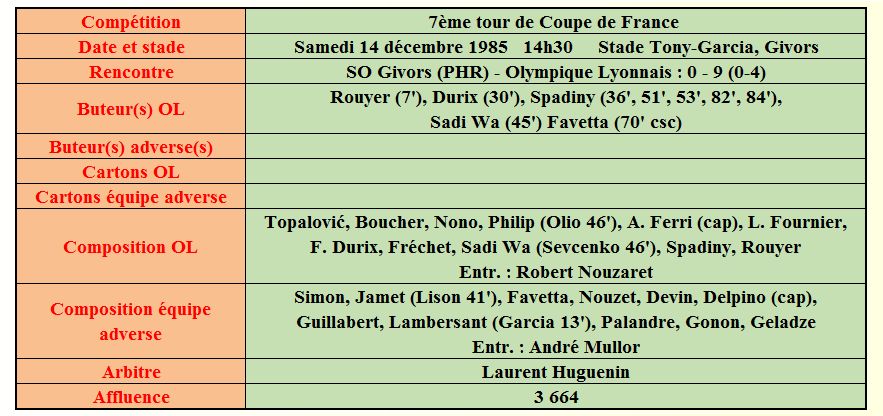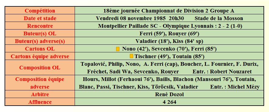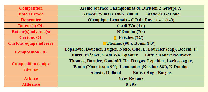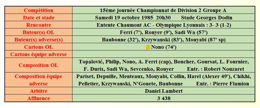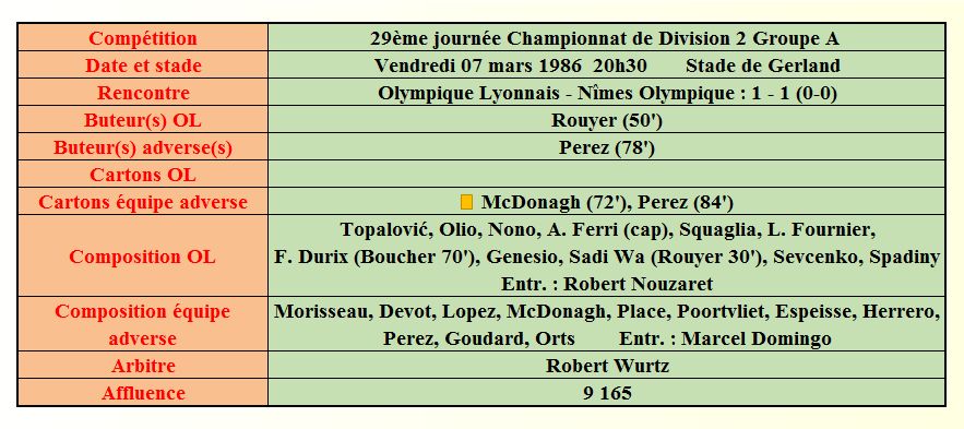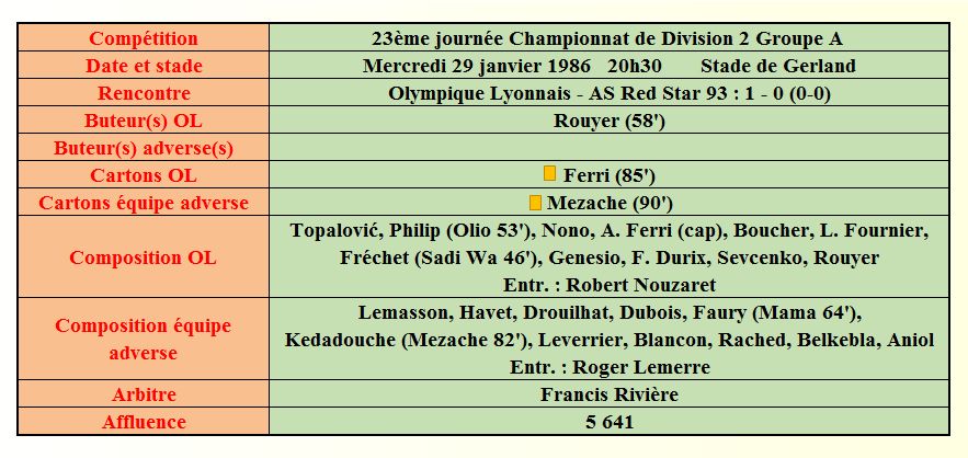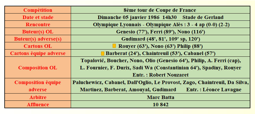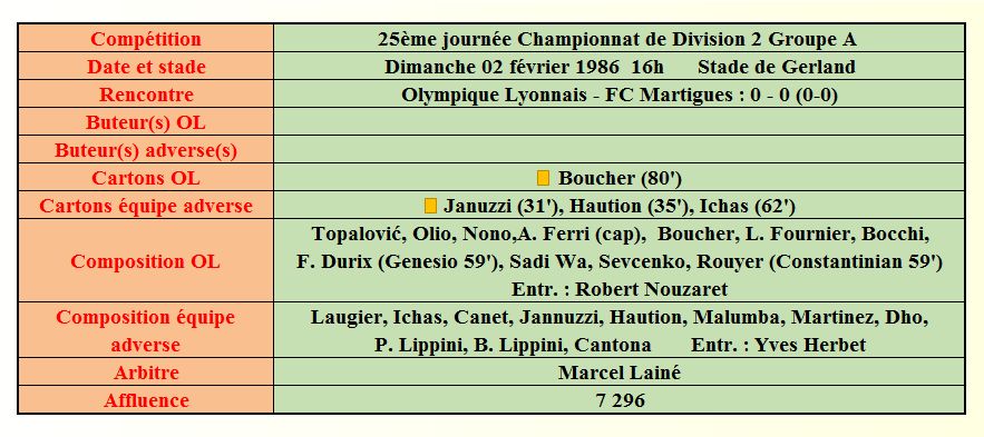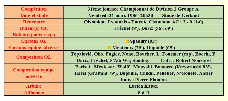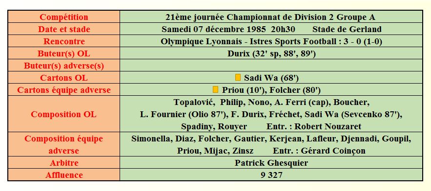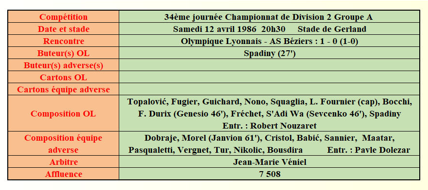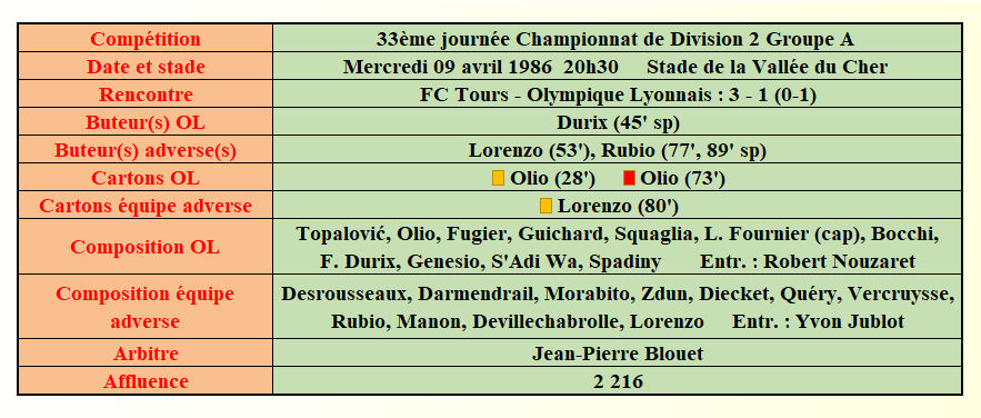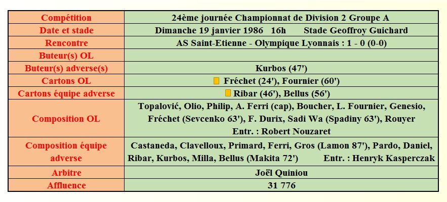 Saison 1985 - 1986